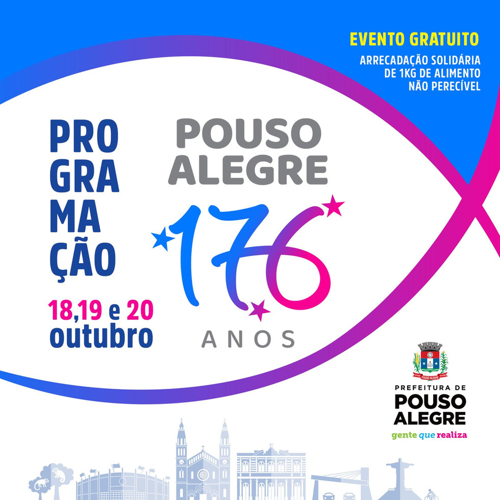 No dia 19 de outubro, Pouso Alegre celebra seus 176 anos de elevação à cidade, e a Prefeitura preparou um mês repleto de atividades para homenagear essa data tão especial.